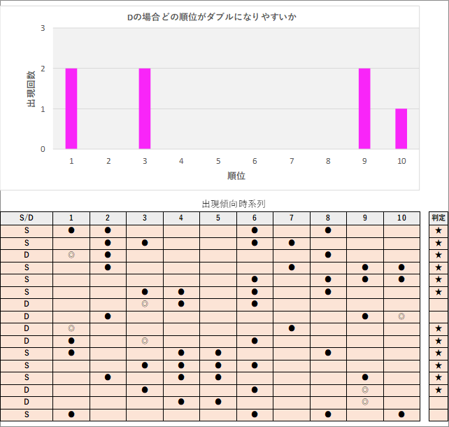 直近5回とS,Dの種類の出方を