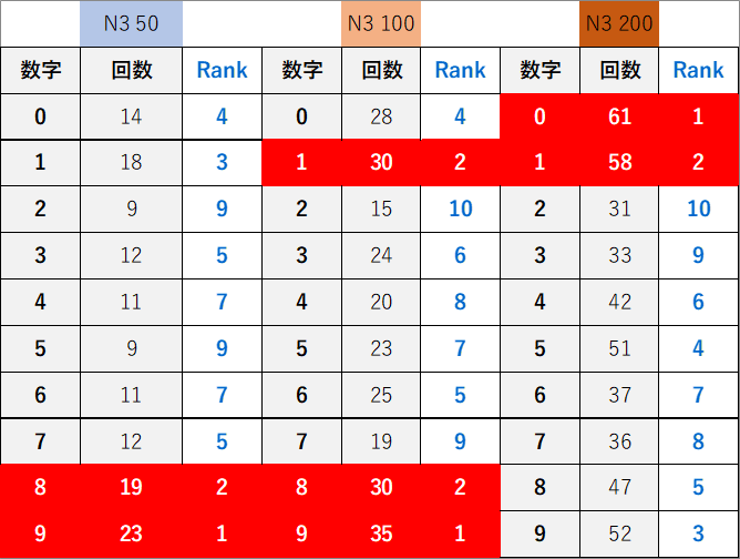 個別数字のデータ
