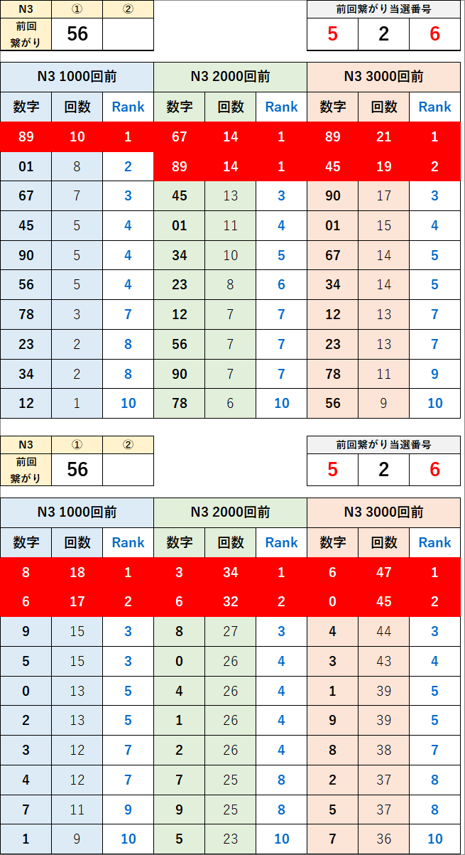 順位引っ張り前回がダブルの時のみ掲載します。