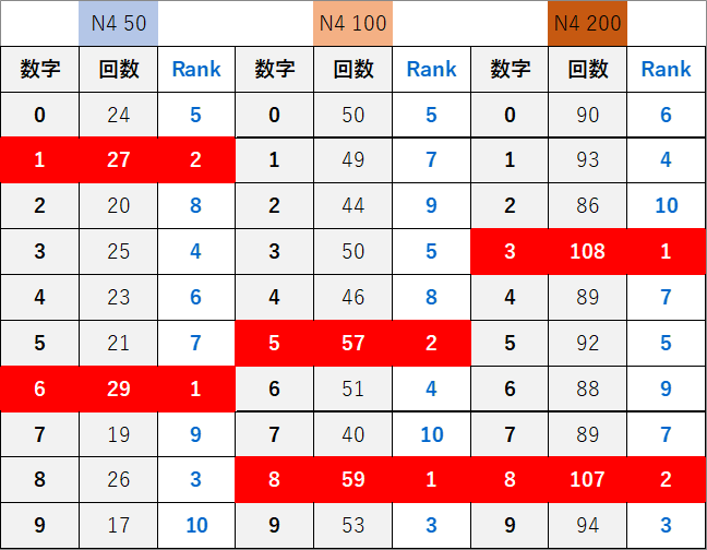 ペア数字解析データー
