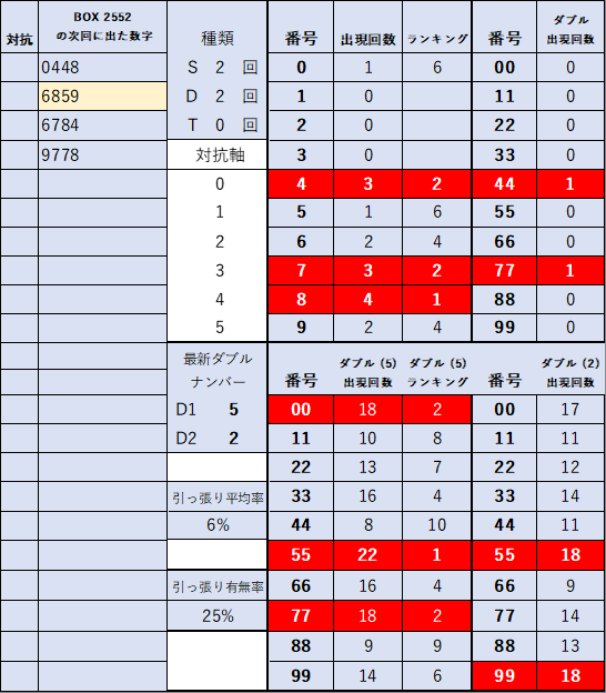 ペア数字解析データー