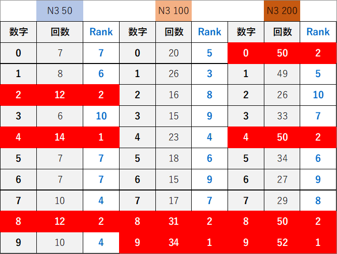 ペア数字解析データー