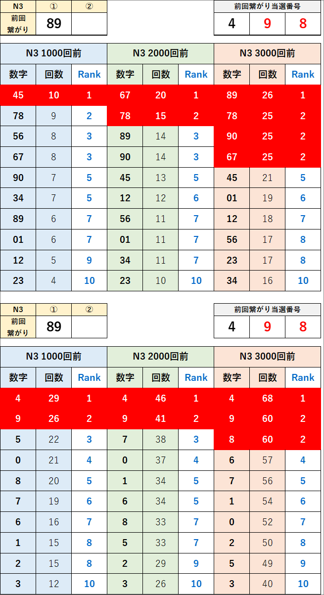 直近の繋がり数字から過去次回に