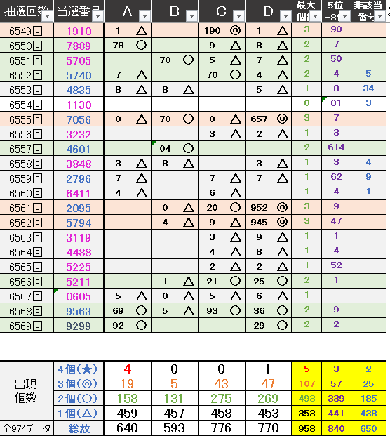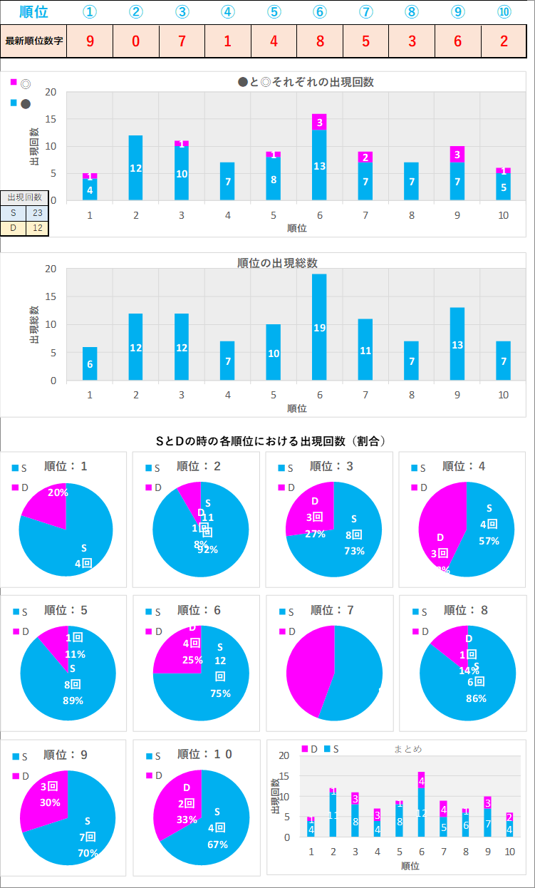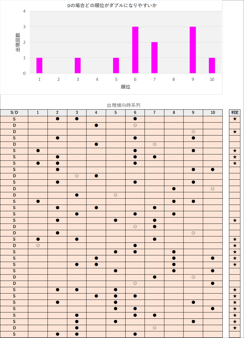 直近5回とS,Dの種類の出方を