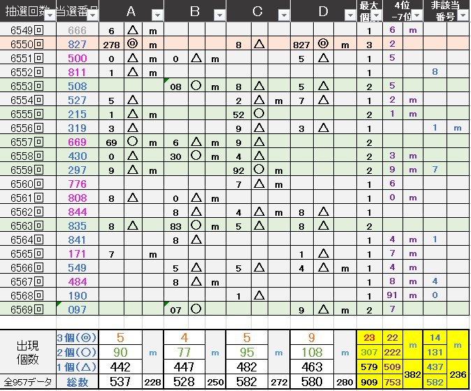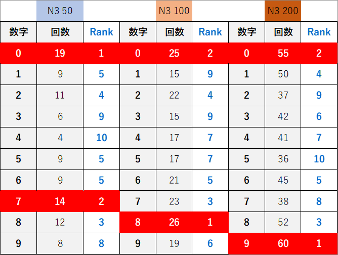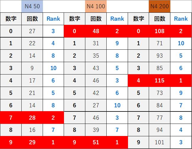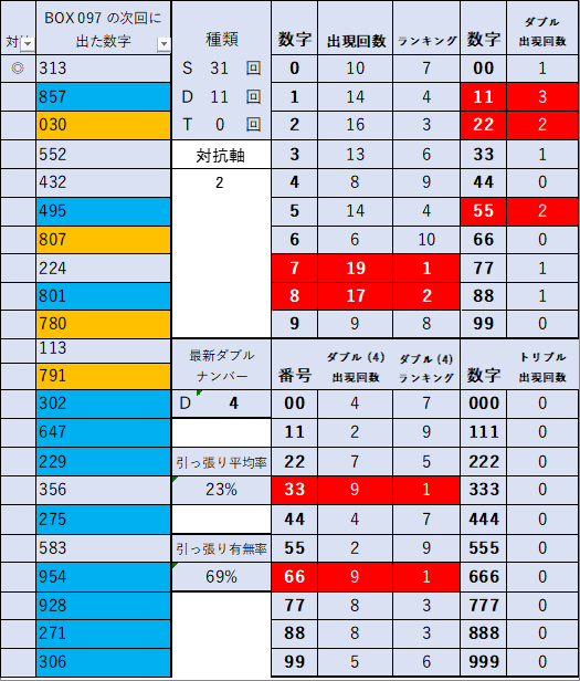 ペア数字解析データー