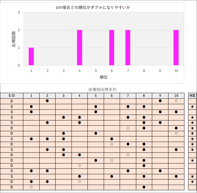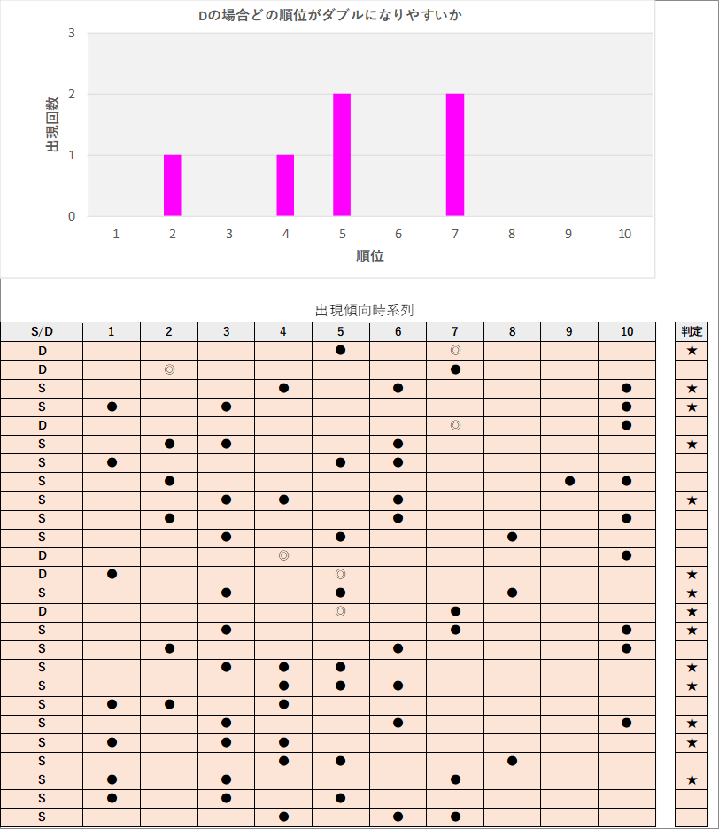 直近5回とS,Dの種類の出方を