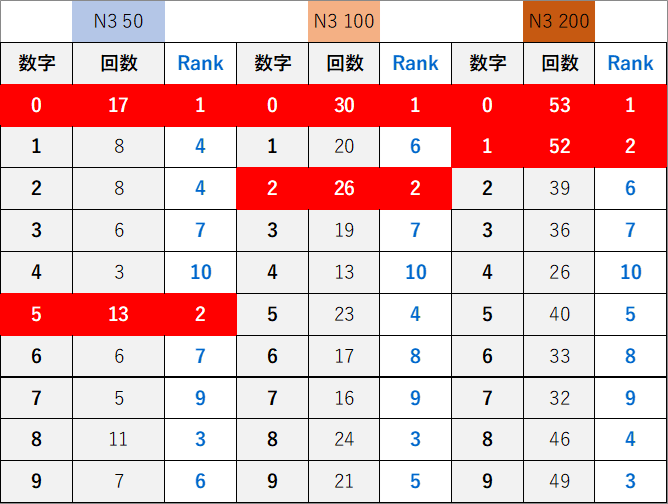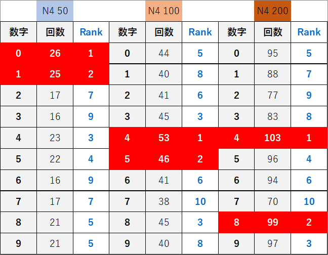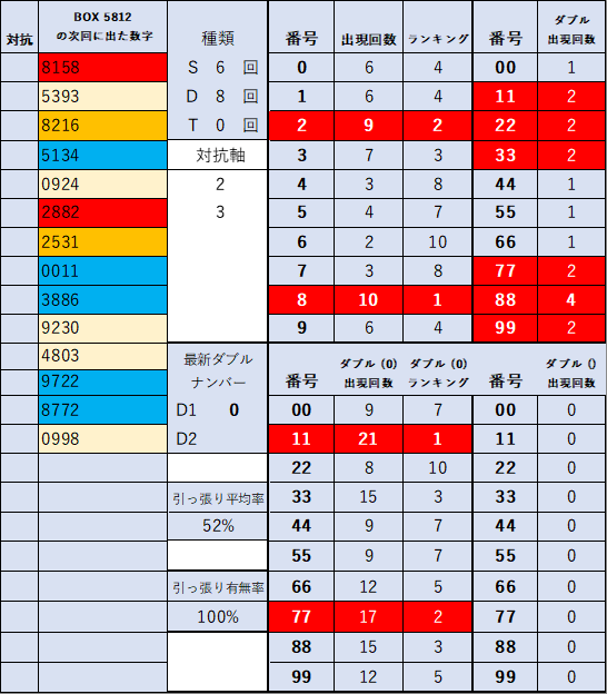 ペア数字解析データー