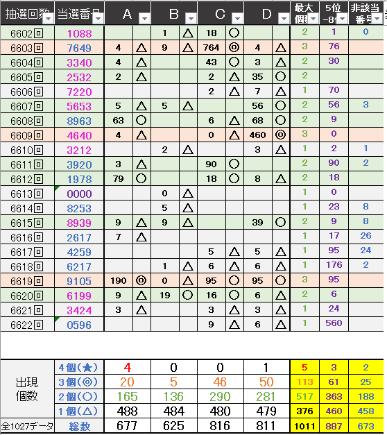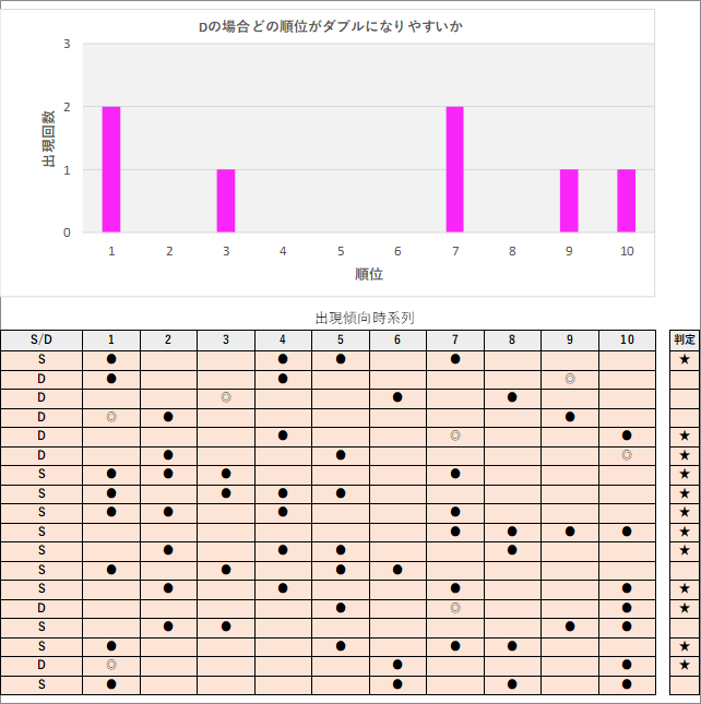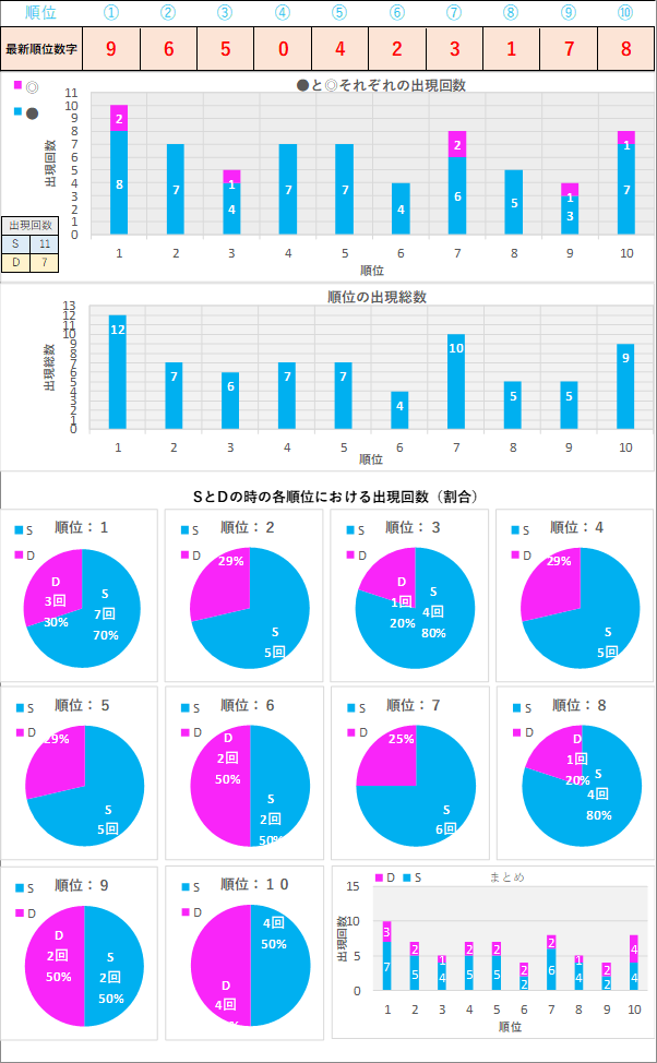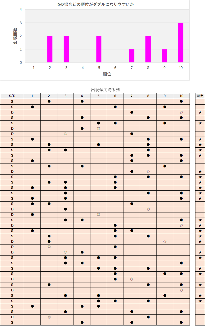直近5回とS,Dの種類の出方を