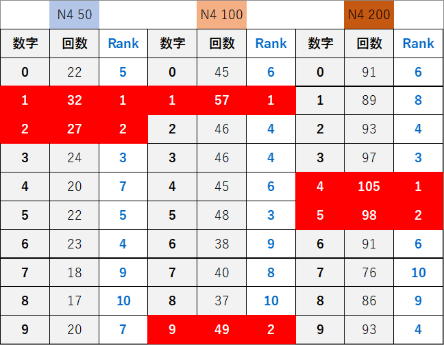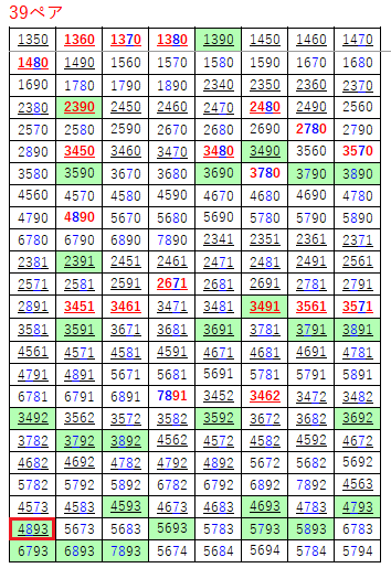 ペア数字解析データー