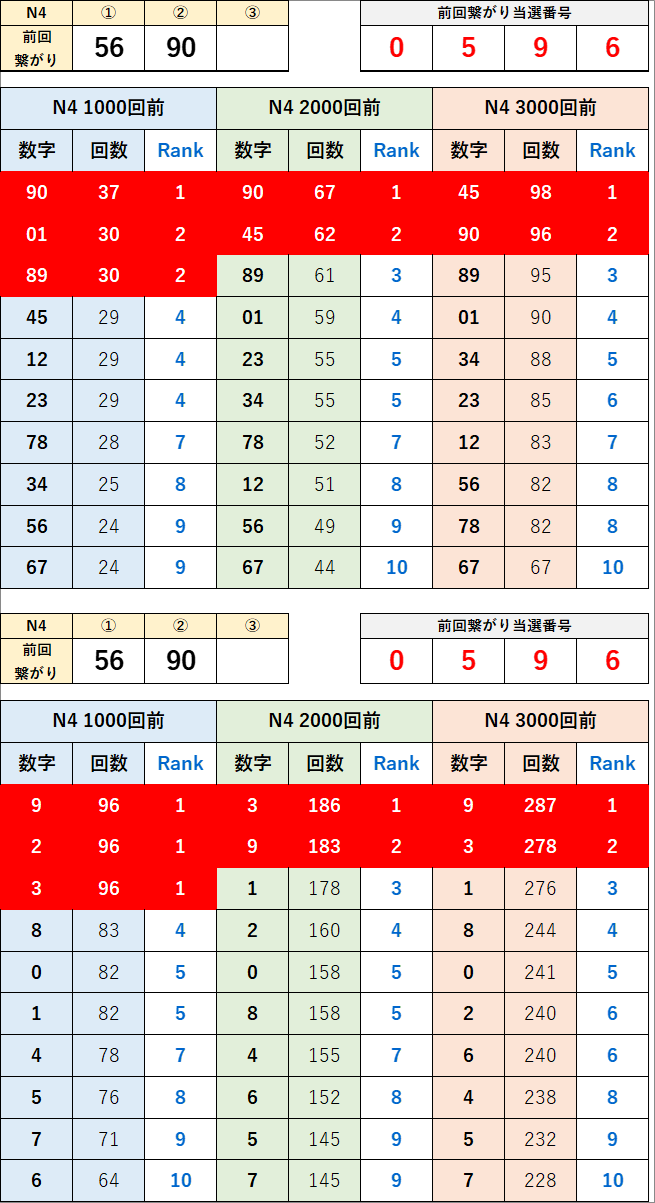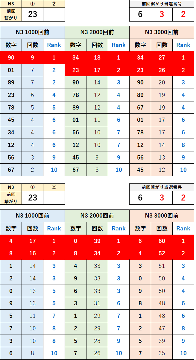 直近の繋がり数字から過去次回に