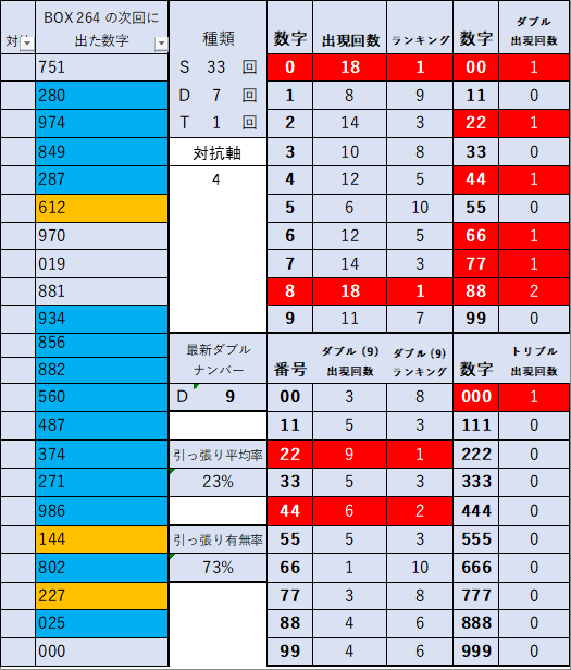 前回当選番号 264