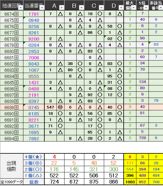 過去どの数字が絡んでいるかの統計数