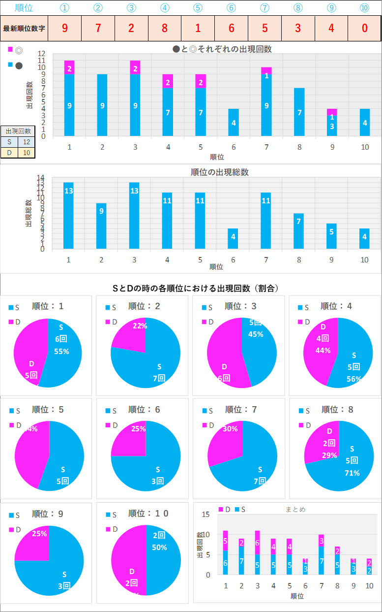 直近5回とS,Dの種類の出方を