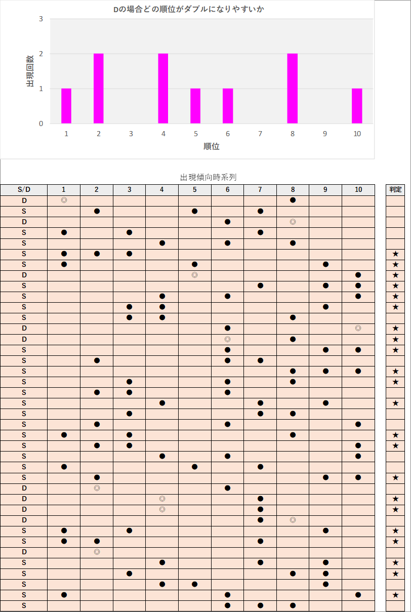 直近5回とS,Dの種類の出方を