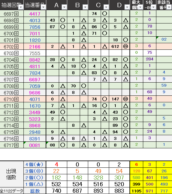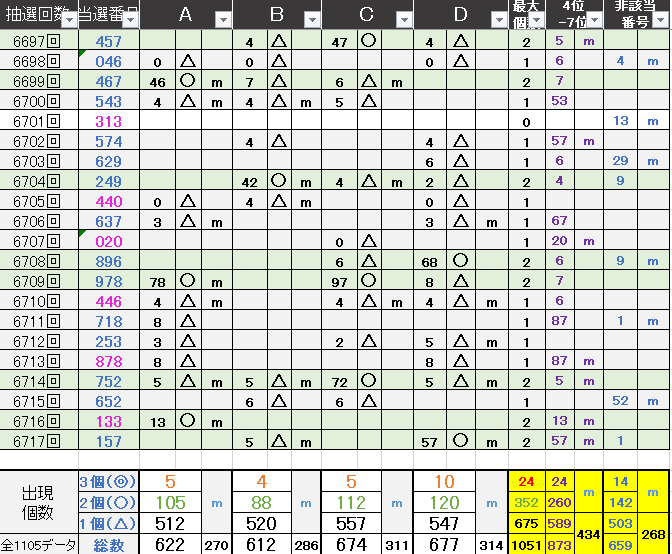 過去どの数字が絡んでいるかの統計数