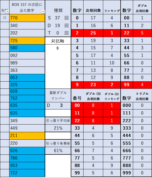 ペア数字解析データー