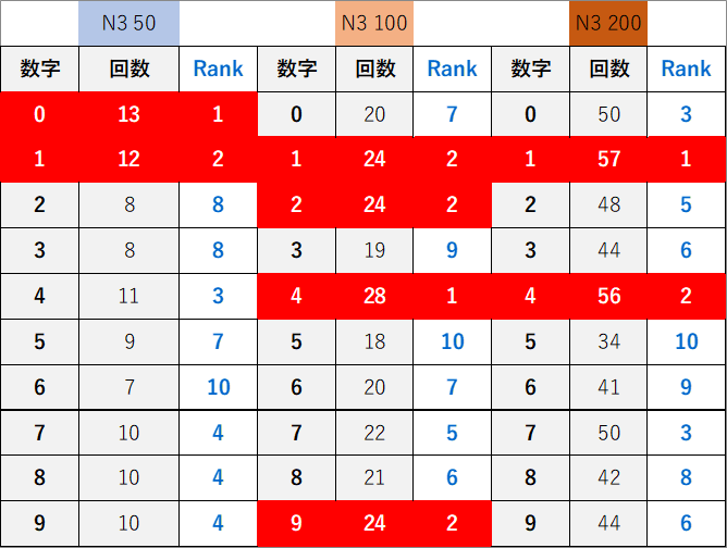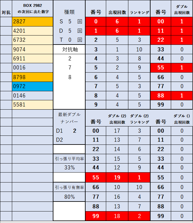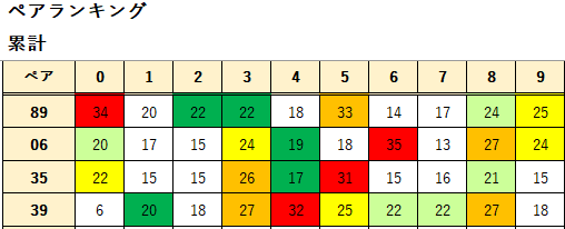 ペア数字解析データー