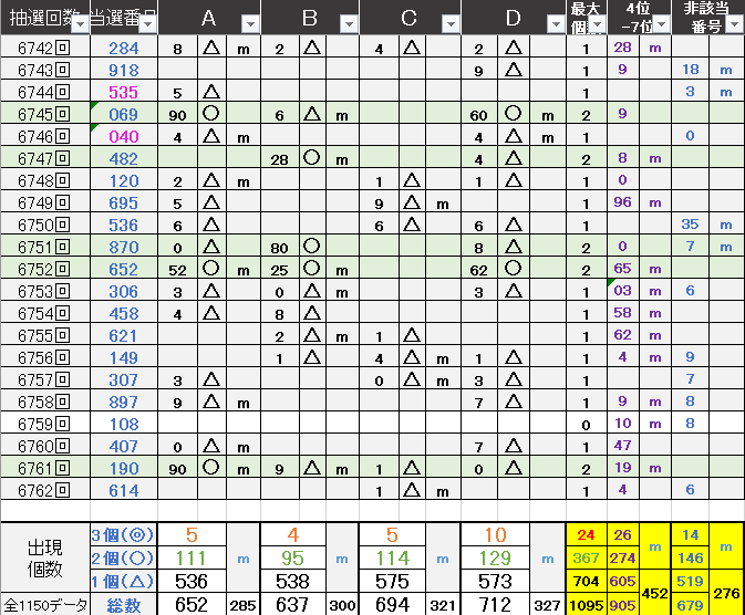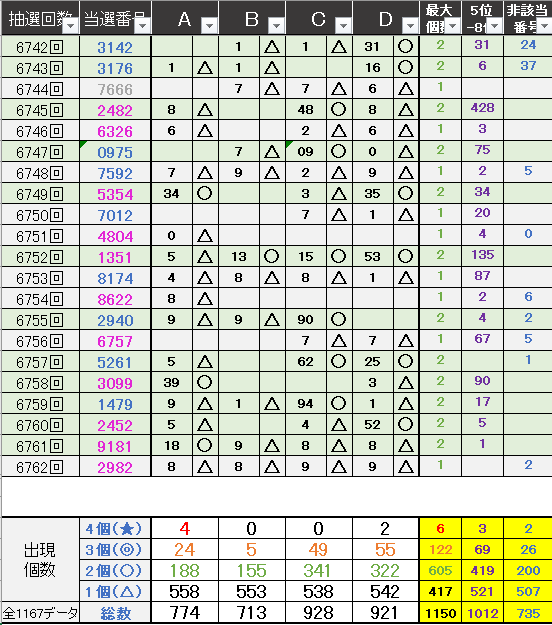 過去どの数字が絡んでいるかの統計数