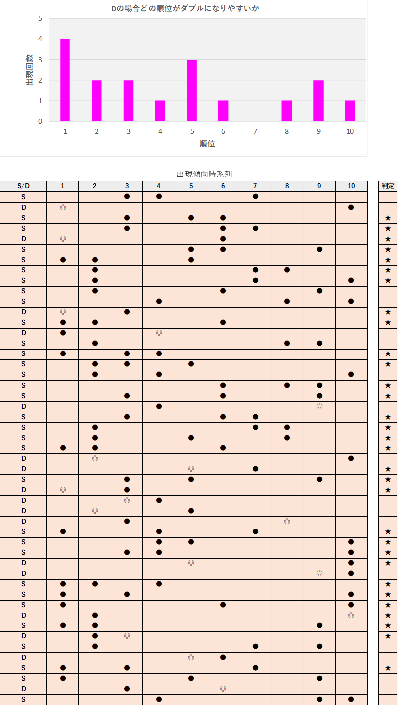 直近5回とS,Dの種類の出方を