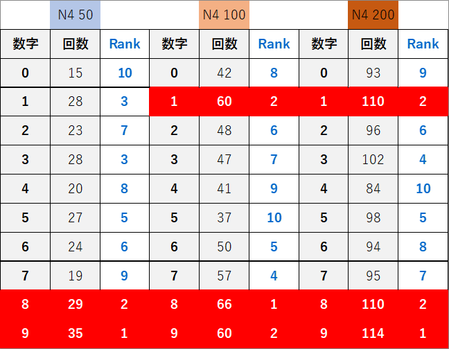 個別数字のデータ