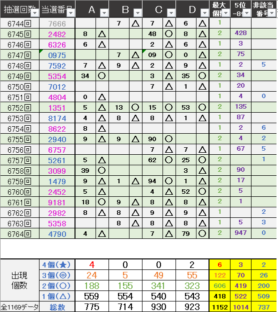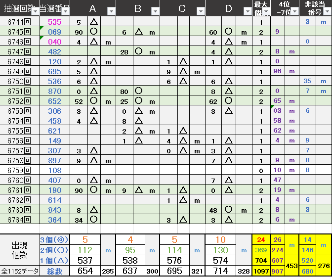 過去どの数字が絡んでいるかの統計数