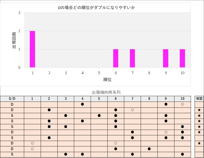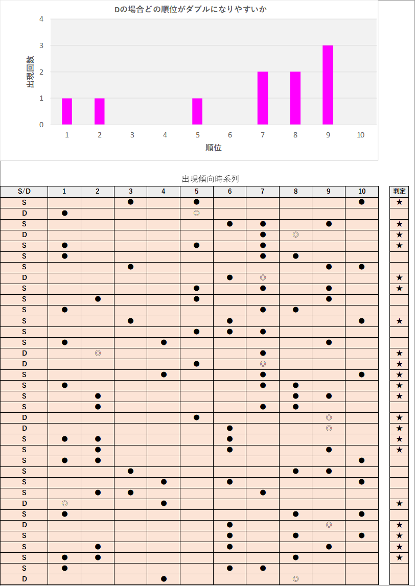 直近5回とS,Dの種類の出方を