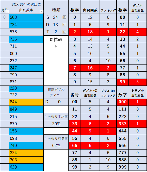 前回当選番号 364