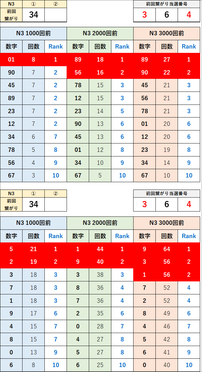 直近の繋がり数字から過去次回に