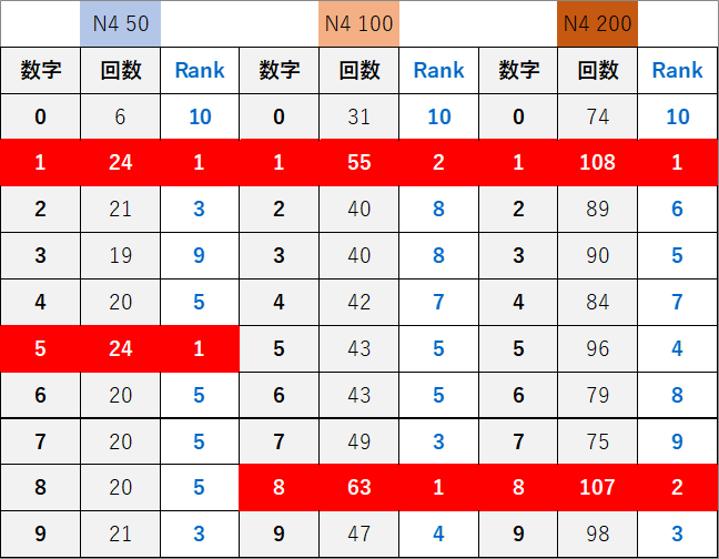 ペア数字解析データー