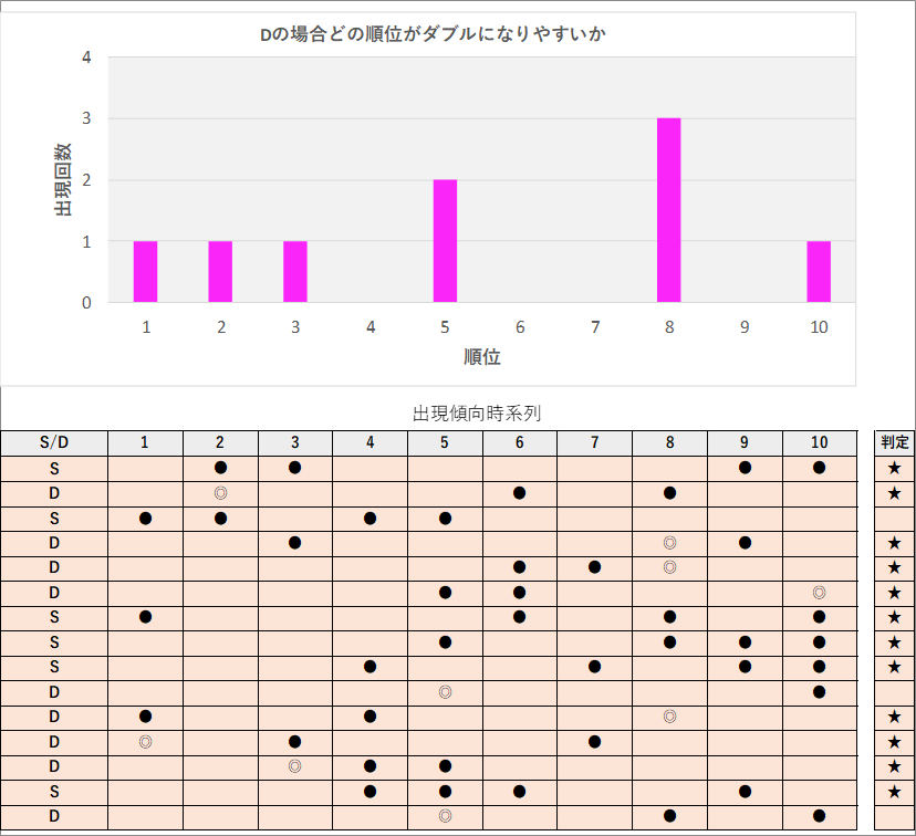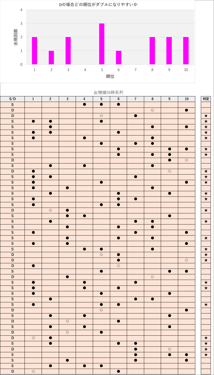 直近5回とS,Dの種類の出方を