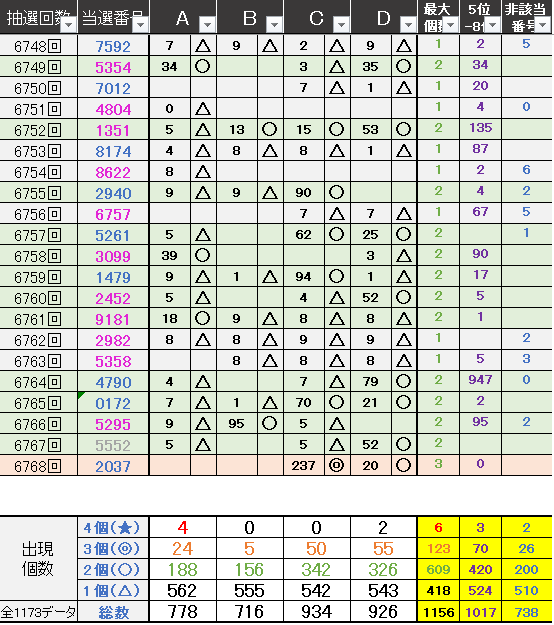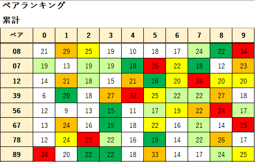 ペア数字解析データー