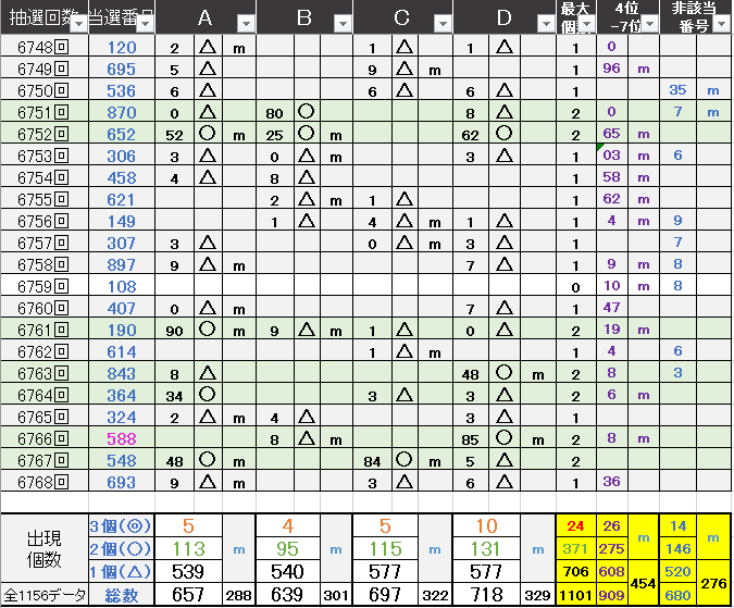 過去どの数字が絡んでいるかの統計数