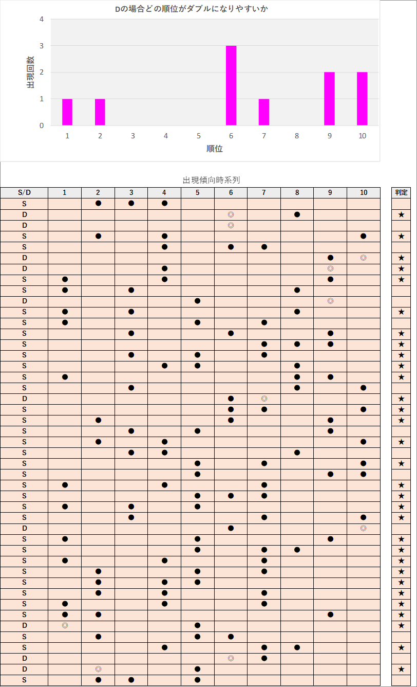 直近5回とS,Dの種類の出方を