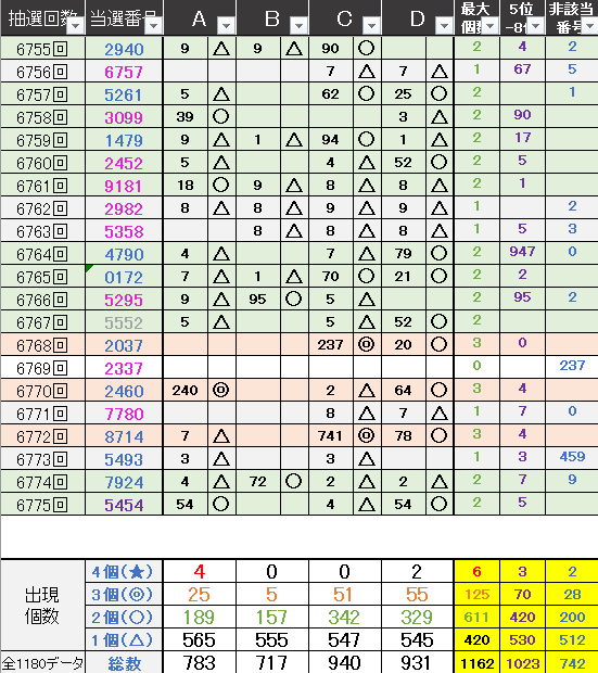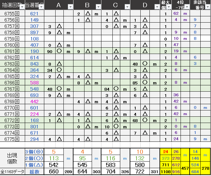 過去どの数字が絡んでいるかの統計数