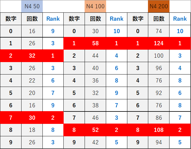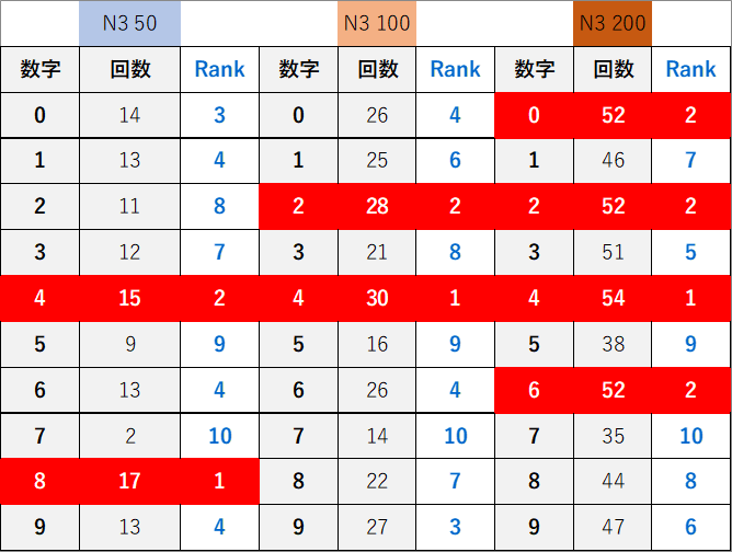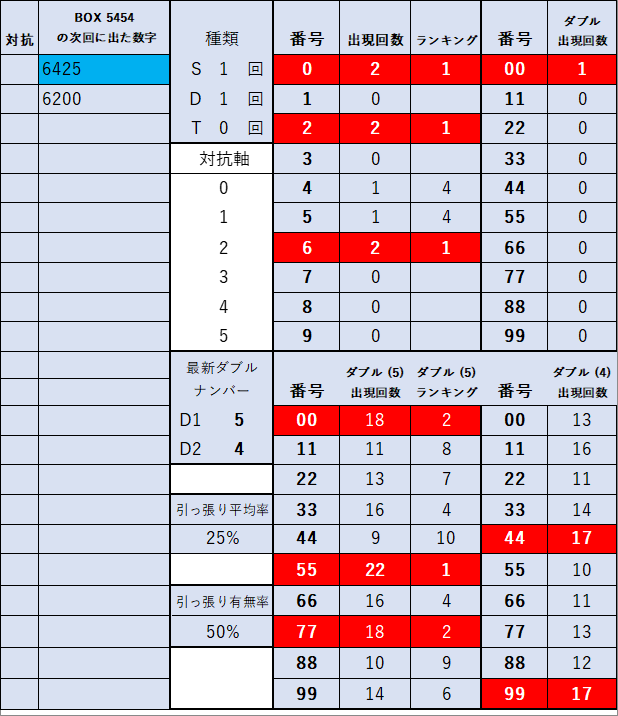 ペア数字解析データー