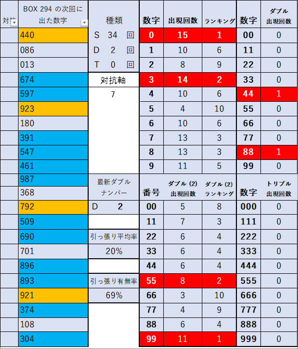 前回当選番号 294