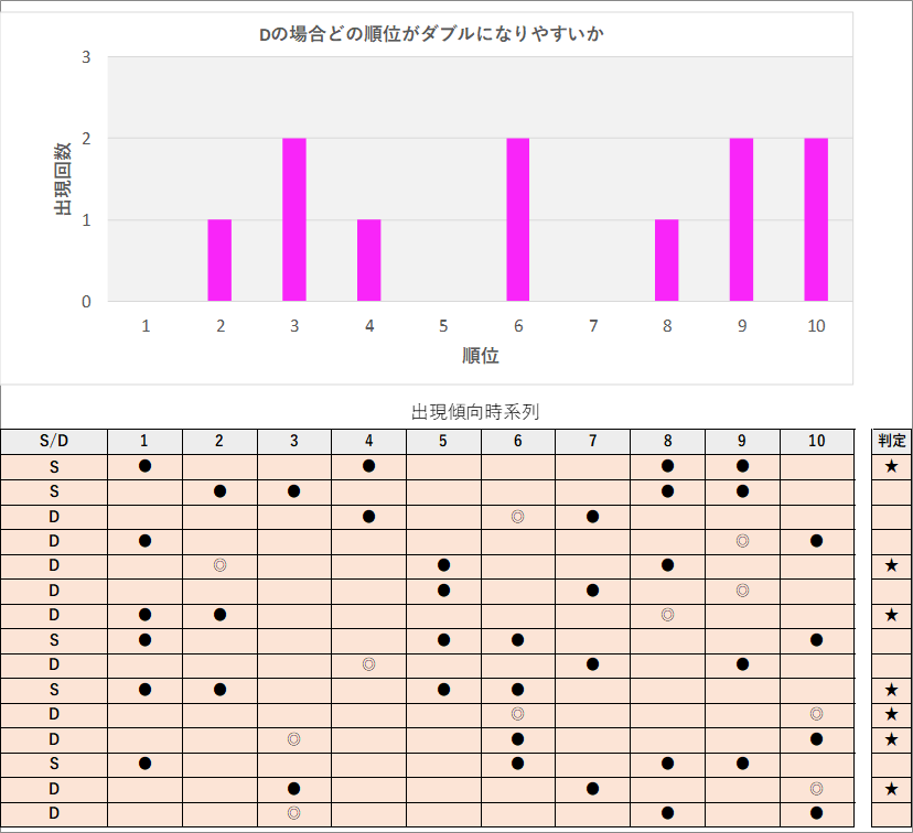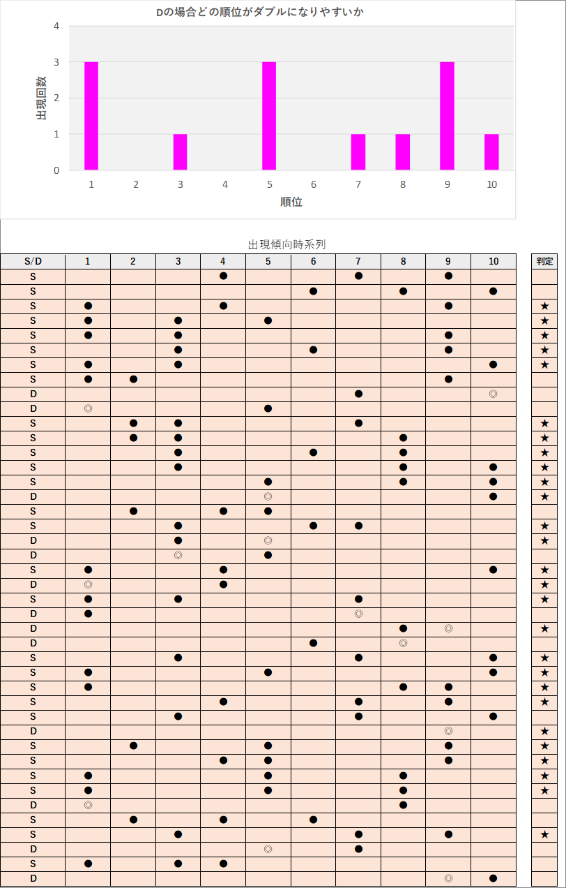 直近5回とS,Dの種類の出方を