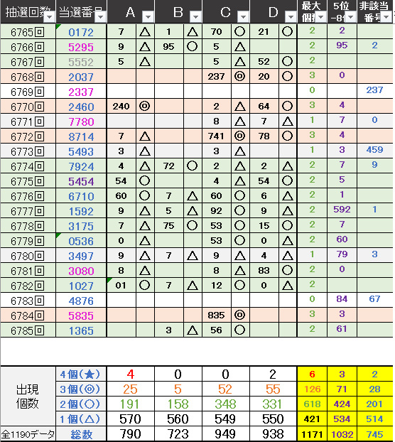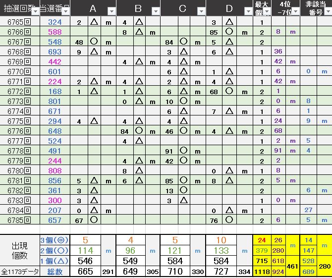 過去どの数字が絡んでいるかの統計数