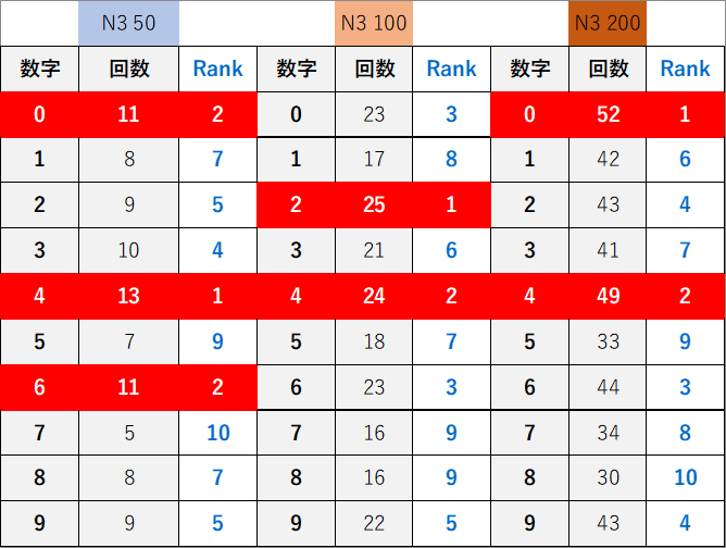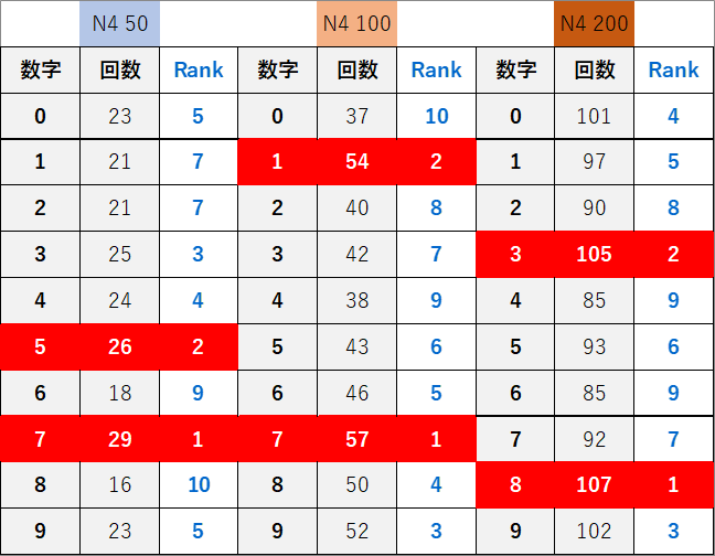 ペア数字解析データー