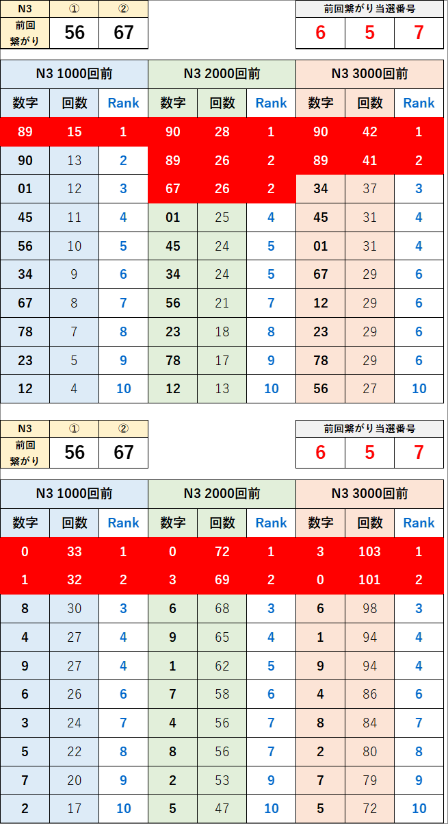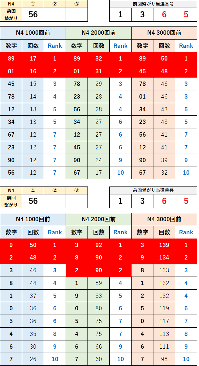 直近の繋がり数字から過去次回に