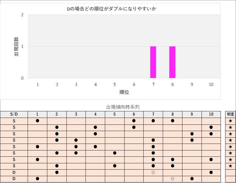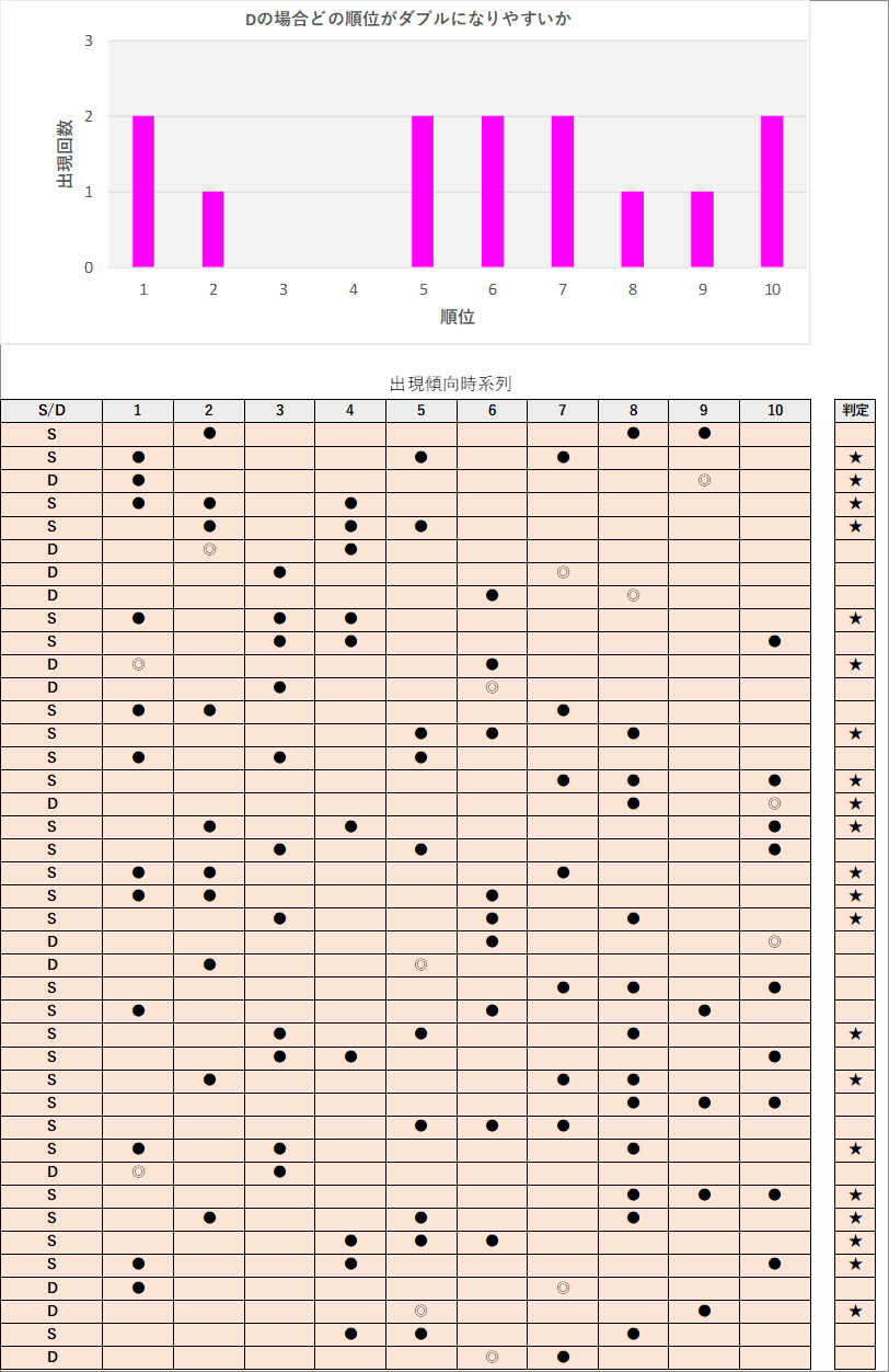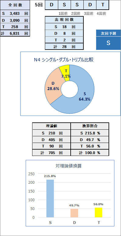 直近5回とS,Dの種類の出方を
