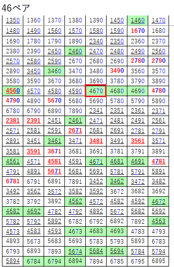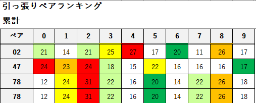 ペア数字解析データー