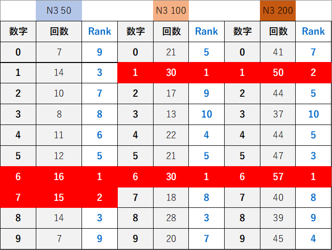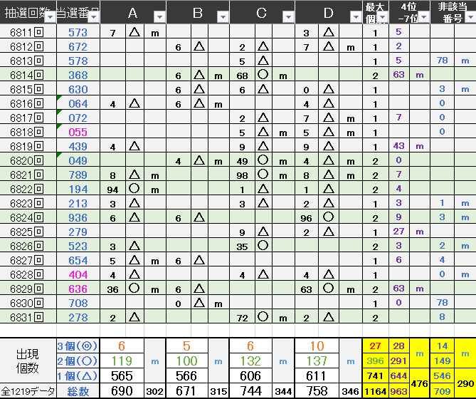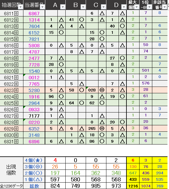 過去どの数字が絡んでいるかの統計数