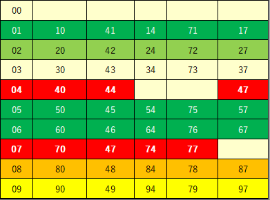 ・「0」「4」「7」 の3つを選ぶと、 最も多くの候補に絡みます。