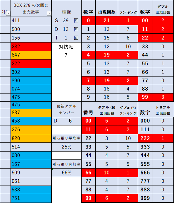 前回当選番号 278